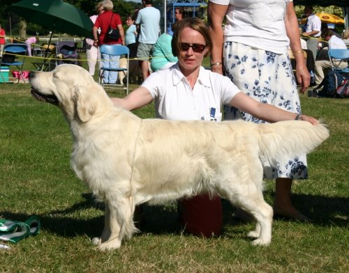 Teddy winning Best in Show at the Golden Retriever Show in 2006 handled by Heidi Karves | |||||||||||||||